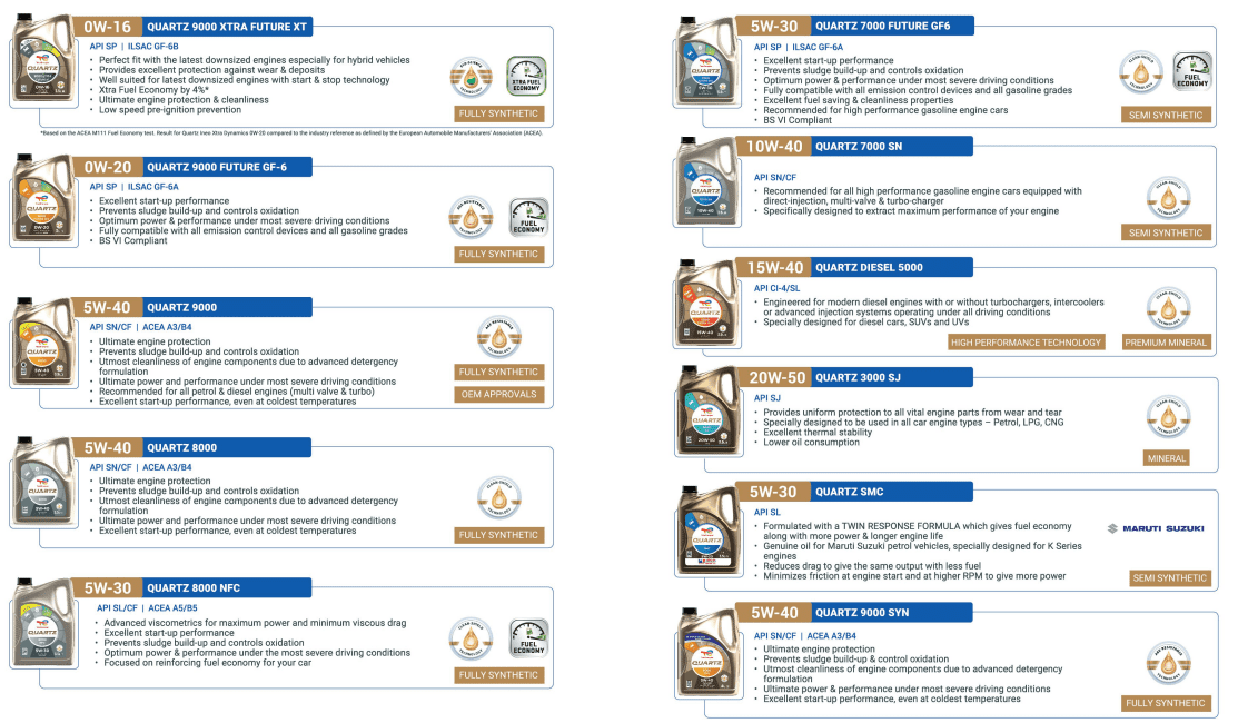 TotalEnergies’ flagship line for passenger vehicles is the QUARTZ range, engineered to meet the stringent demands of modern petrol and diesel engines. These lubricants, approved by numerous global Original Equipment Manufacturers (OEMs), are developed using cutting-edge technology such as Age Resistance Technology (ART). This advanced formulation delivers exceptional protection against engine wear, friction, and thermal stress, effectively preserving the engine’s performance and extending its lifespan. Specialized products like QUARTZ INEO utilize Low-SAPS (Sulphated Ash, Phosphorus, Sulfur) technology to protect post-treatment systems, such as Diesel Particulate Filters (DPFs) and catalytic converters, ensuring vehicles comply with the latest, strict environmental and emissions standards.