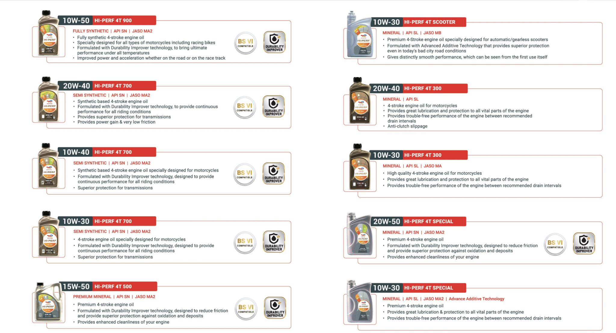 Recognizing the importance of the two-wheeler market, the automotive portfolio includes the HI-PERF range for motorcycles and scooters. These dedicated 4-stroke engine oils, some featuring Durability Improver technology, provide enhanced protection for the engine, gearbox, and clutch (preventing slippage) under difficult road conditions.